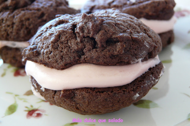 Whoopie Pies de Chocolate Rellenos de Frosting de Fresitas de Marshmallows